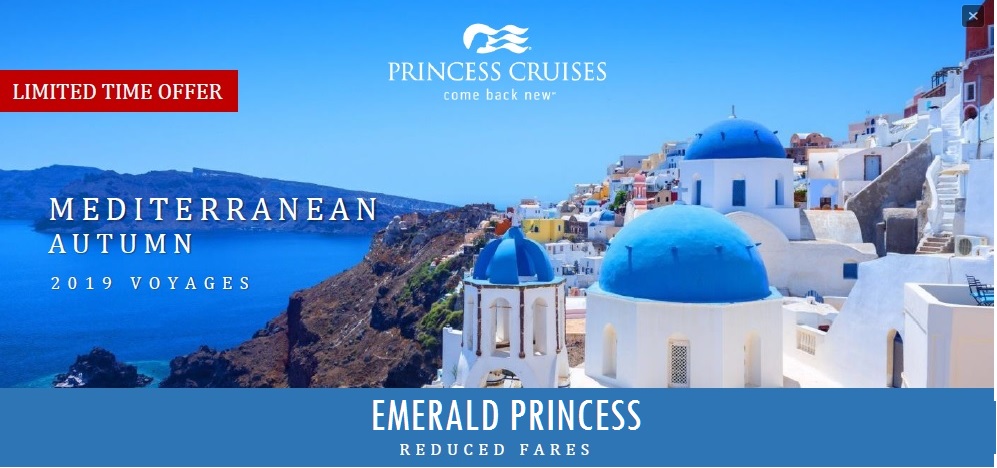 Emerald Princess Mediterranean Autumn 2019 Voyages Valid till 30 Jun 2019